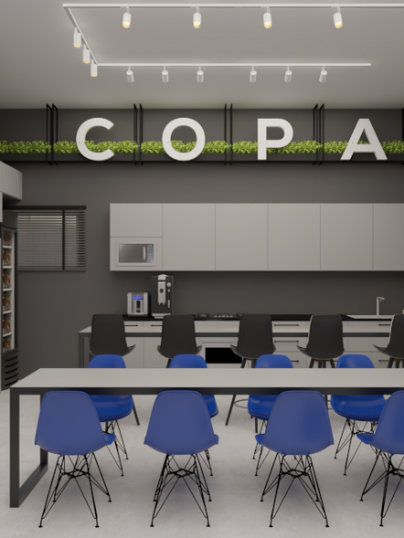 Primeiro corporativo desenvolvido pelo escritório, partimos do estudo de planta para melhor aproveitamento do vão livre do prédio escolhido, delimitando as divisórias a partir dos estudos de fluxos, equipes de colaboradores e funções. Os tons neutros dão espaço ao azul, cor da identidade visual da marca.